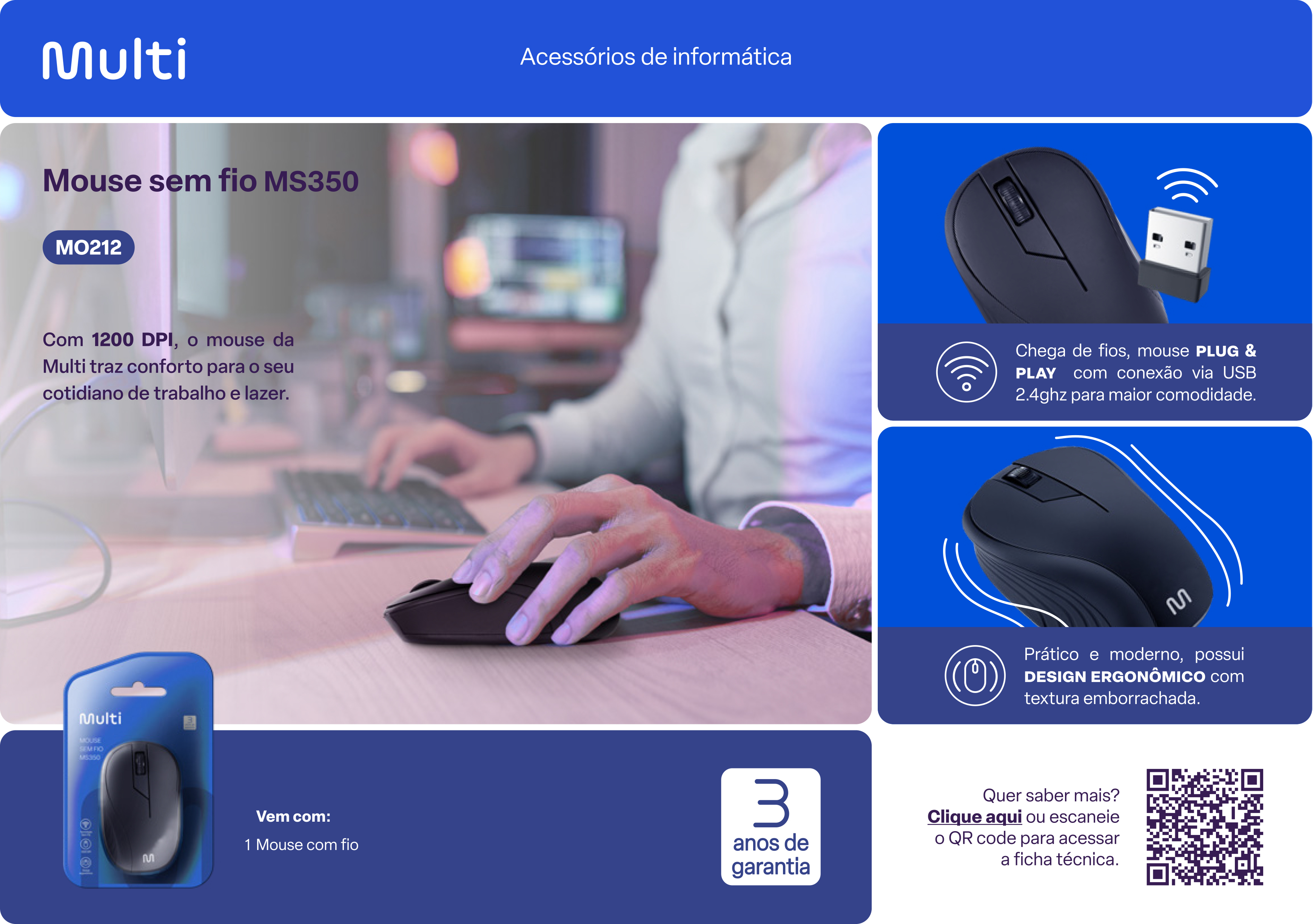 Este mouse é ideal para proporcionar praticidade e simplicidade ao seu dia-a-dia, sem o uso de fios. Com tecnologia de conexão Plug e Play, conecte a entrada USB e comece a usar. A velocidade de 1200DPI e frequência sem fio de 2.4GHz, que te permitem navegar com precisão e um rastreamento em alta definição! Alimentado por apenas 2 pilhas AAA (não inclusas), você não precisa se preocupar em carregar fios. Detalhes: - Cor: Preto - Plug & Play - Design Anatômico - Alcance: 10 metros - Tecnologia 2.4Ghz - Velocidade DPI: 1200 - Conexão: Sem Fio - USB - Alimentação: 2 pilhas AAA (não inclusas) - Compatibilidade: Windows \ Linux \ MacOS \ Windows® - Conteúdo da Embalagem: 1 Mouse sem fio; 1 Micro receptor USB; 1 Guia rápido; - Composição do Material: Polipropileno - 3 anos de garantia